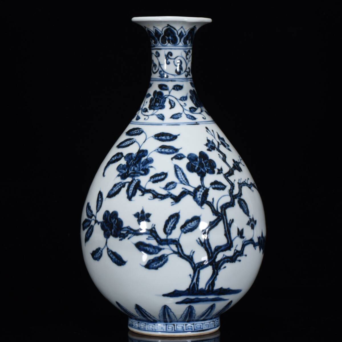 - 【仁】『明・宣德年製款・古陶瓷品・青花・花鳥紋・玉壺春瓶』極細工 古賞物 中国古玩 古美術 古美味