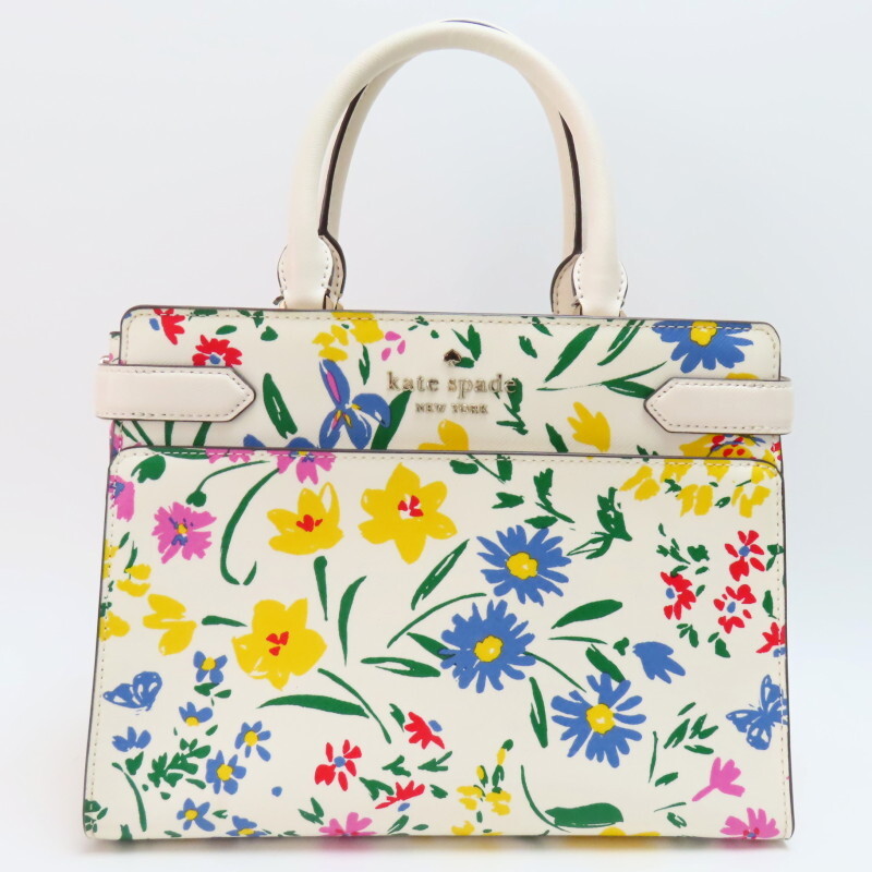 > K03-k023 Kate spade ケイトスペード フラワー柄 PVC/レザ― ハンドバッグ ホワイト/マルチカラー