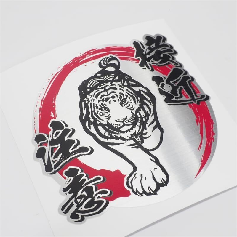 - (ヘアライン 15cm)接近注意ステッカー 和柄 トラ 虎【赤丸×黒文字】 高齢者 初心者 サイン シール 車用 トラック トラグッズ