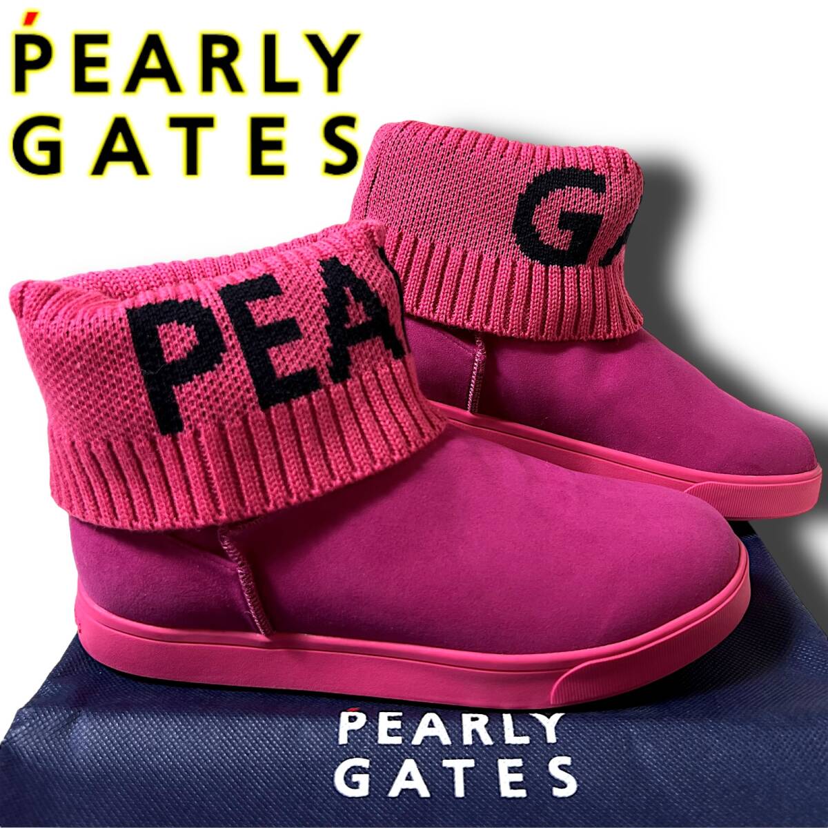 - ◆新品 PEARLY GATES パーリーゲイツ 定価3.7万 レザー×リブニット 裏ボア スパイク ゴルフシューズ ショートブーツ 24cm B6750