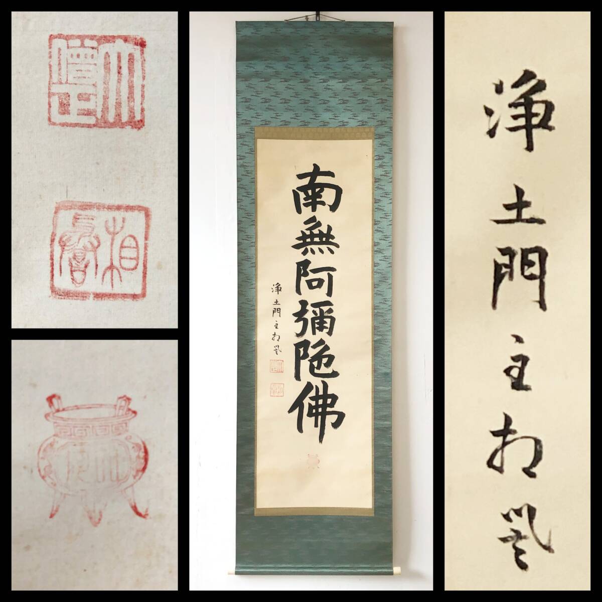 > 【真作】W468【 郁芳随円/一蓮社/相誉/入阿/琵水 浄土宗知恩院81代門主/金戒光明寺63世 『名号』】掛軸/書/墨蹟/絹本/合箱