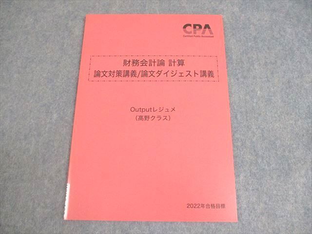 > CPA会計学院 公認会計士講座 財務会計論 計算 論文対策/ダイジェスト講義 Outputレジュメ2022年合格目標未使用品 ☆ 006s4C