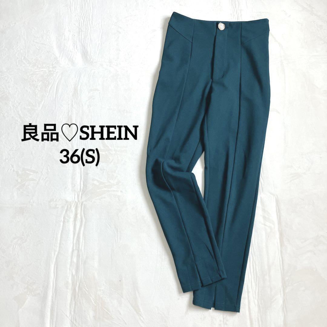 - シーイン SHEIN センタープレスパンツ【36】裾スリット 良品緑 ストーン