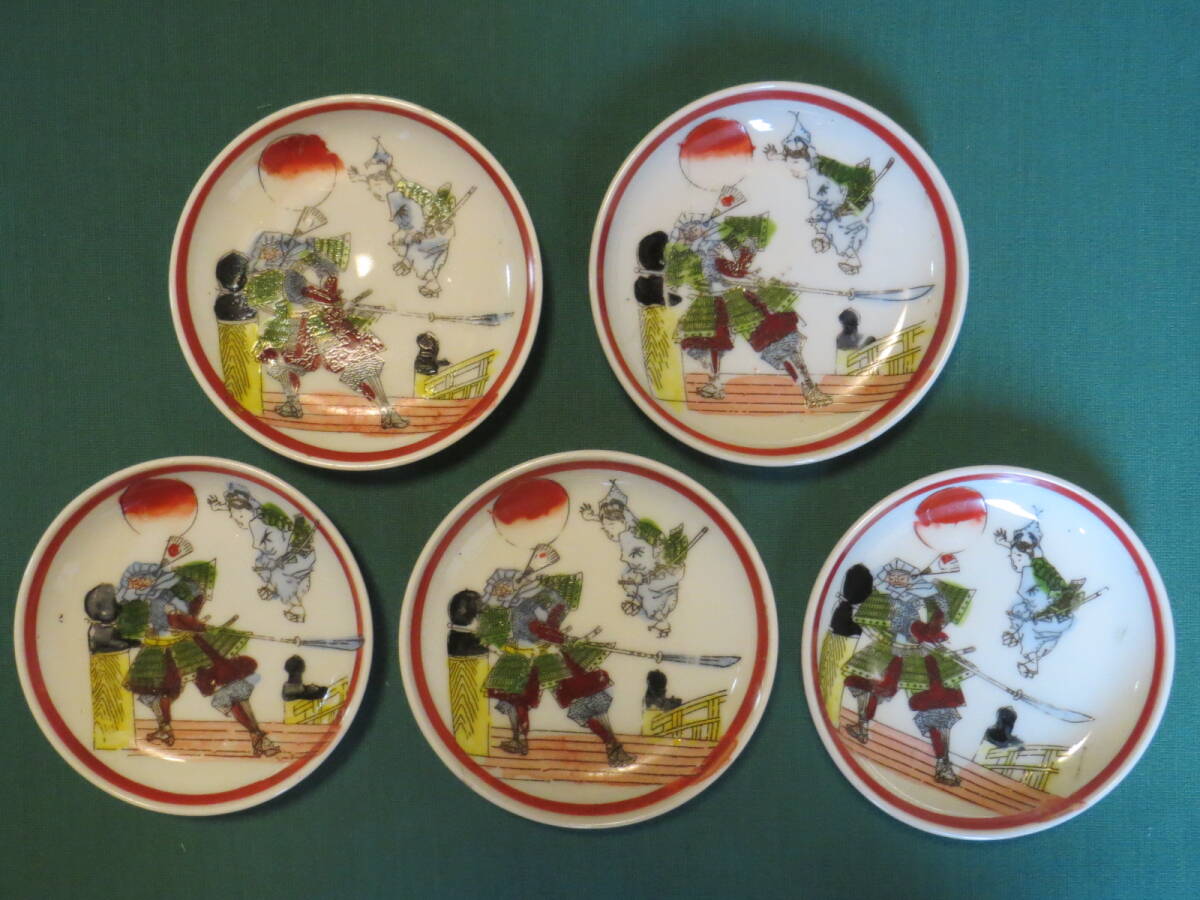 - 印版 色絵小皿 牛若丸弁慶 五條大橋 図 5枚 手塩皿