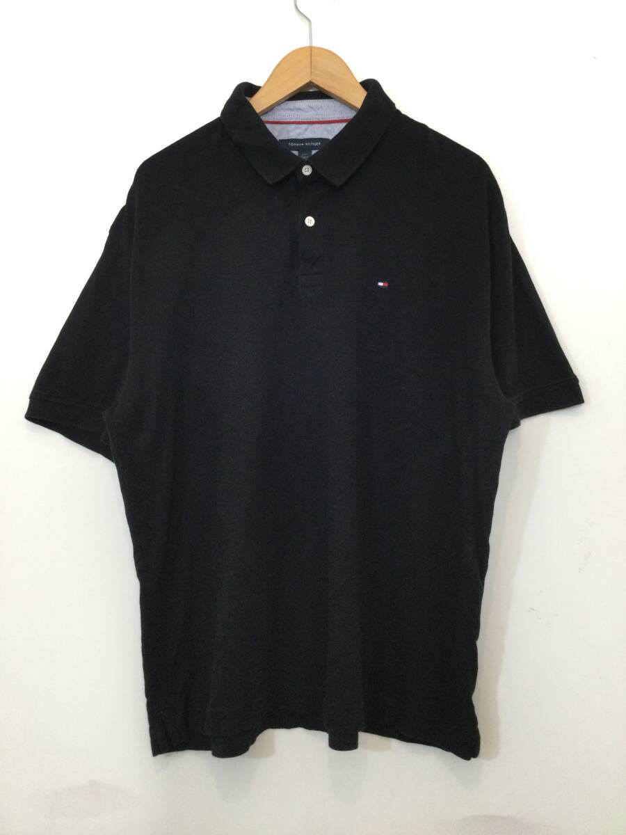 - TOMMY HILFIGER トミーヒルフィガー コットン半袖ポロシャツ ポロシャツ 胸ロゴ メンズL 黒 良品綺麗