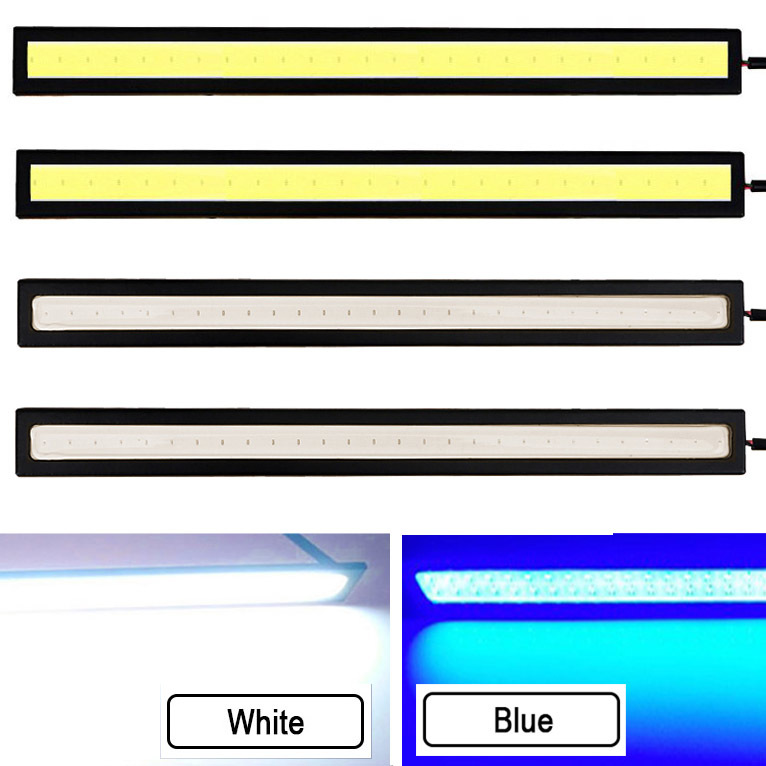> ★ LED デイライト バーライト 12V COB 全面発光 (ホワイト 2本 & ブルー 2本) ★ 17㎝ 両面テープ付き 防水 ★ 4本セット ★