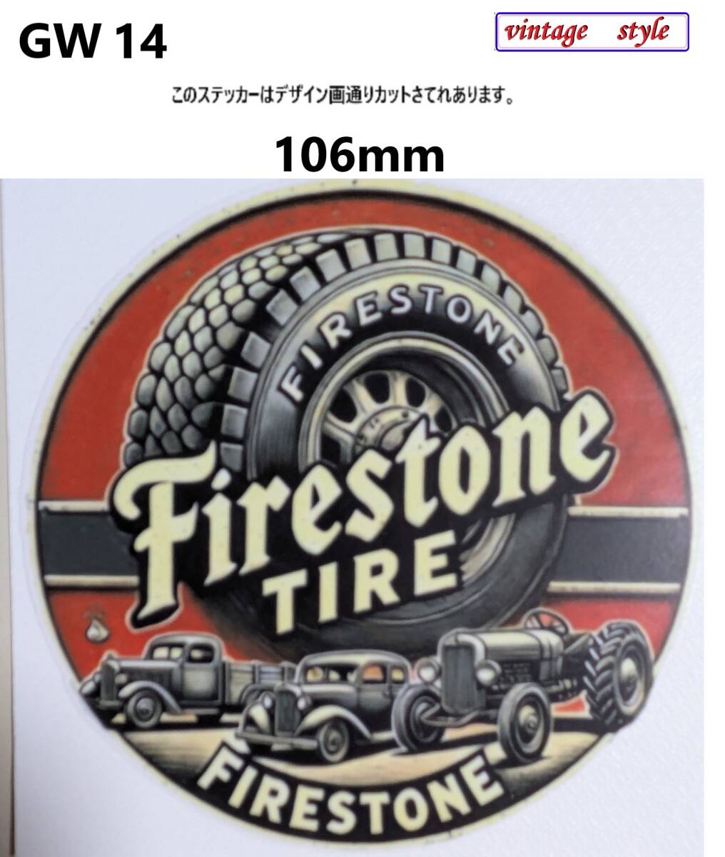 > GW14-2特価~20%OFF ヴィンテージスタイル FIRESTONE ファイヤーストーン タイヤ ガソリンステッカー ダメージ加工 レトロ ガレージ