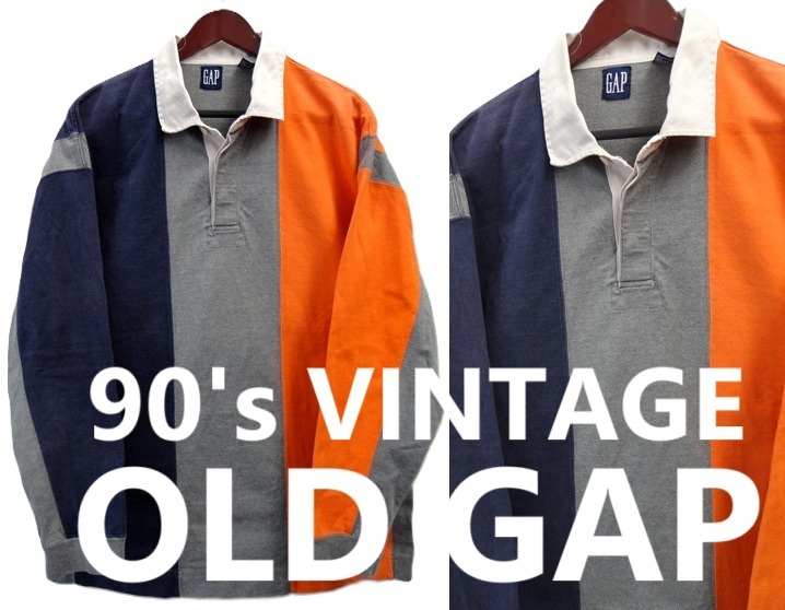 - 90's ヴィンテージ/OLD GAP:オールド ギャップ/マルチカラー切り替え コットン ラガーシャツ/ポロシャツ/Xlsize/グレー/スウェット