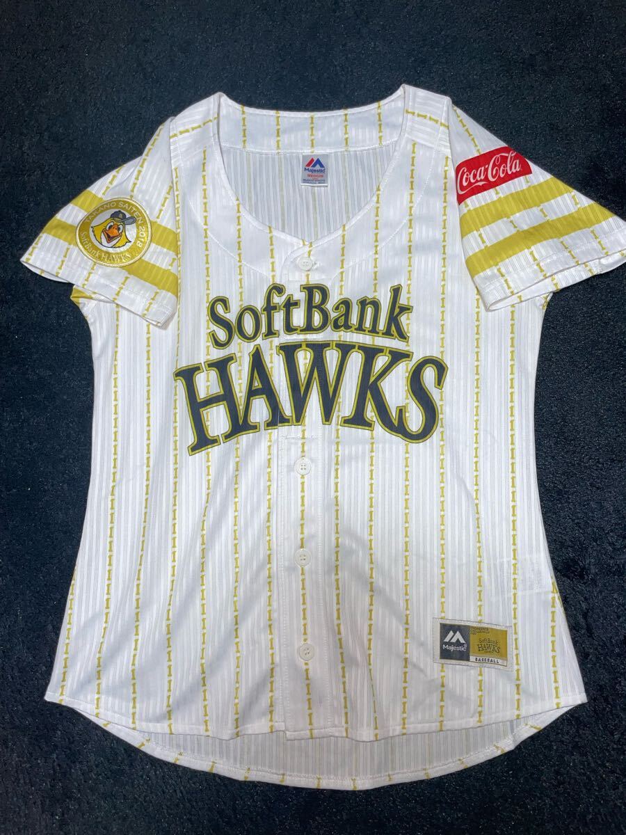 - 即決 送料無料 福岡ソフトバンクホークス ユニフォーム マジェスティック製 MEDIUM LADIES レディースサイズ 鷹の祭典2018年 ストライプ