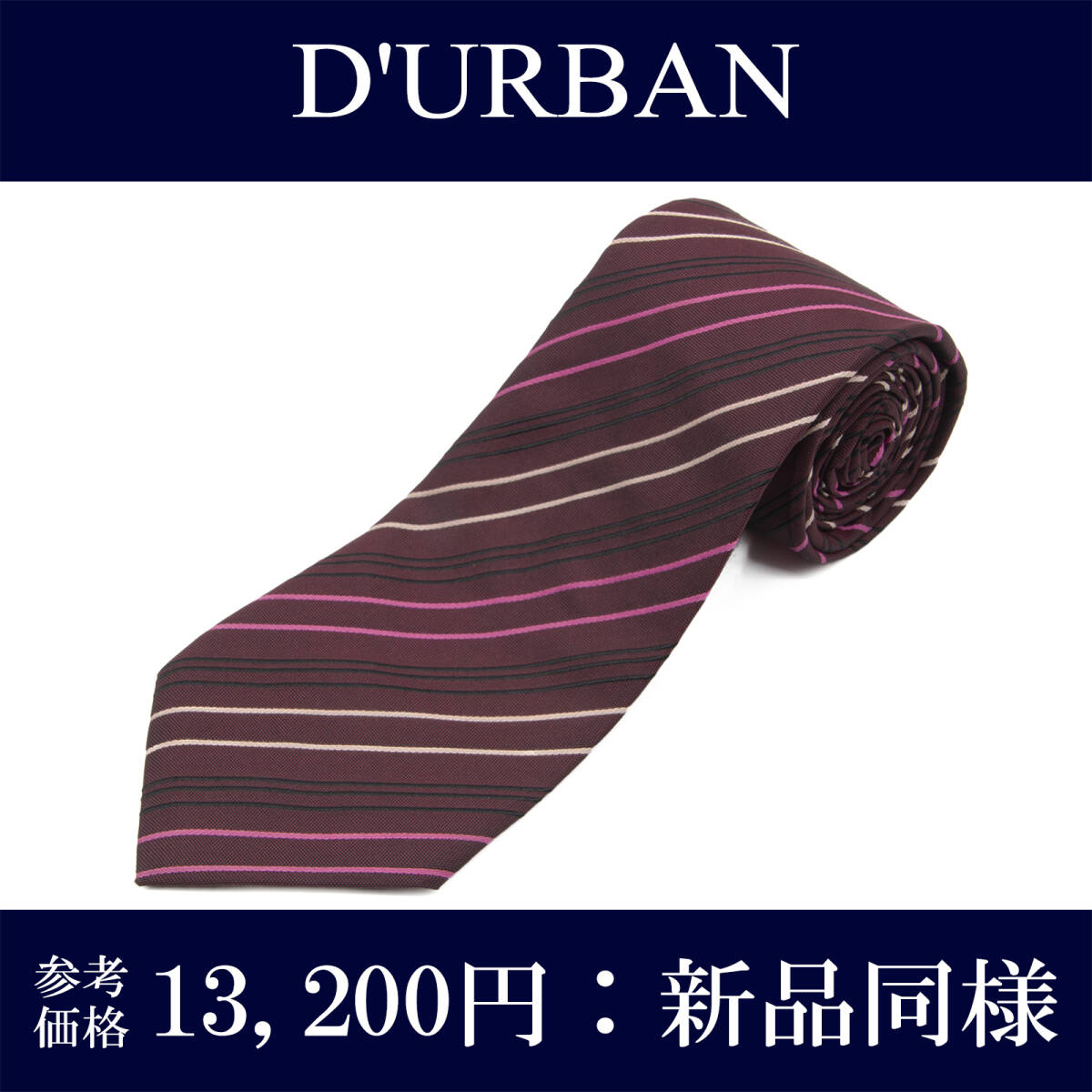 > 送料無料 ダーバン ネクタイ 新品同様 ジャガードタイ シルク ブラウン ピンク 白 黒 ストライプ ブランド 珍しい おしゃれ 綺麗 N573
