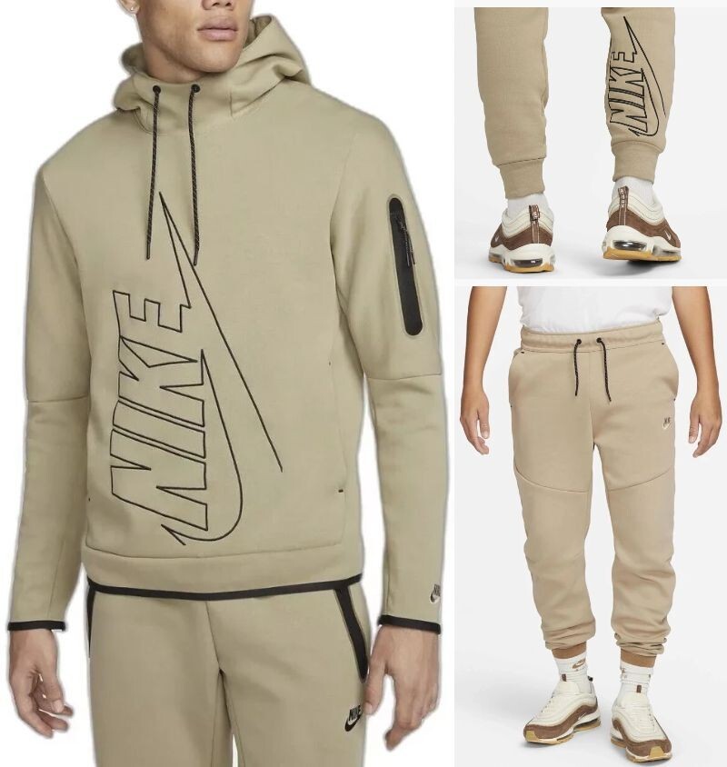 > 残少 XL ナイキ テックフリース 上下セットアップ 検 刺繍ロゴ ビッグスウッシュ パーカー ジョガーパンツ ベージュ クリーム 黒 ブラック