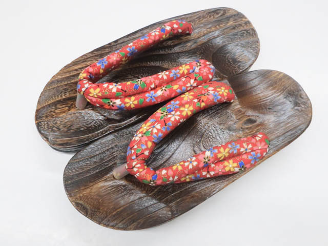 - 《京都一輝堂》【着物】和装小物 下駄 焼き下駄 小花柄 Lサイズ r7w03-995