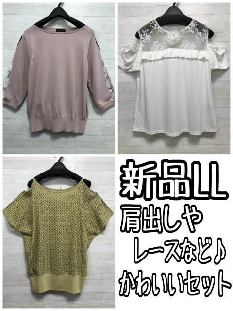 - 新品☆LLレース&肩出し♪フェミニントップス3枚セット〇D660