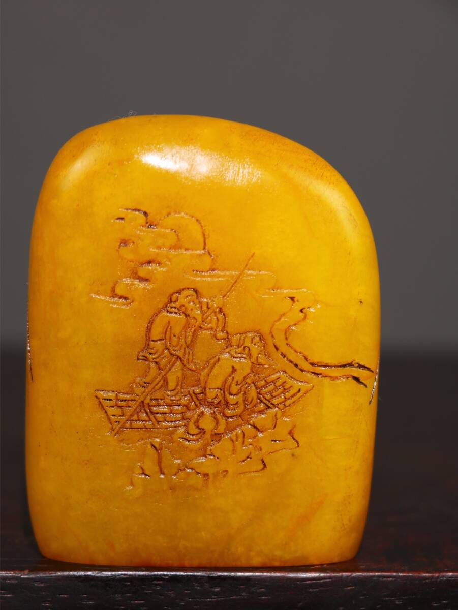 - ▽鴻▽ 寿山石 田黄石 細密彫 江南春行紋印章 置物 古賞物 中国古玩 中国古美術