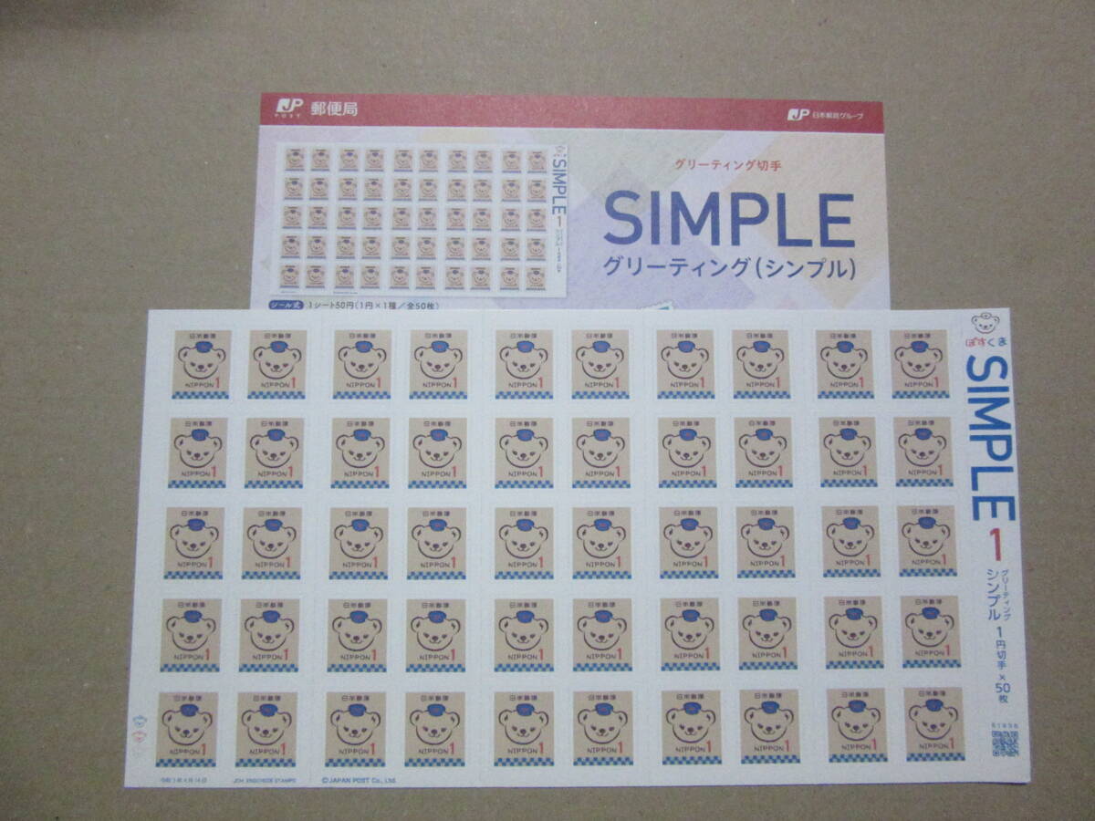- ★グリーティング 切手 SIMPLE グリーティング (シンプル) ぽすくま 2021年4月14日 1円×50枚 1シート 未使用★