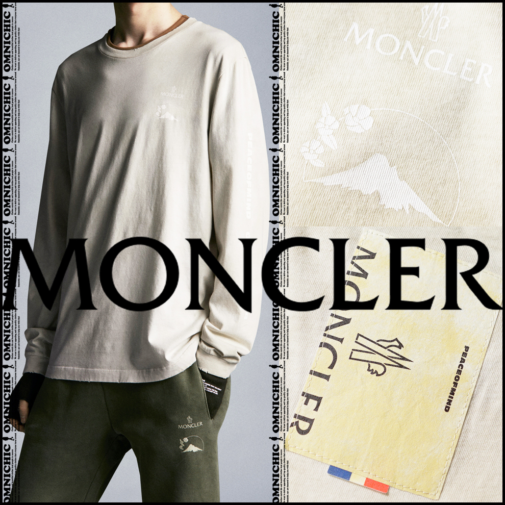 > 贅沢エイジング加工■国内正規/新品【MONCLER】モンクレール高級感ある淡い陰影が馴染む!レアな逸品PEACEOFMINDラインロンTシャツXL/大き目