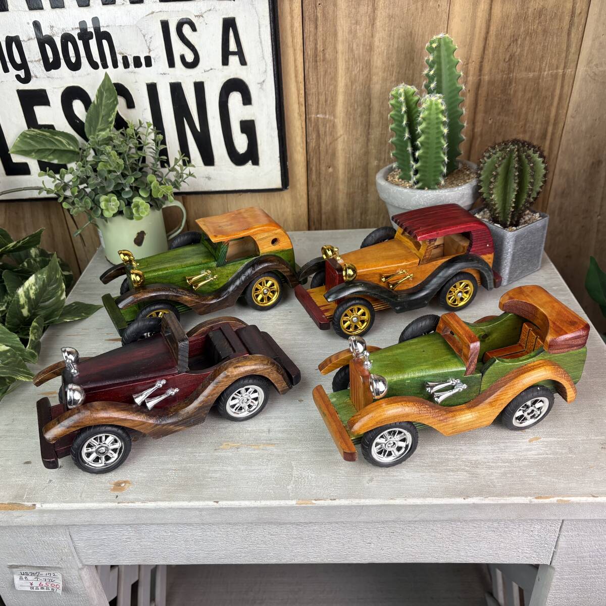 - インテリア雑貨ナチュラルウッド木製クラシックカー4点セット置物ディスプレイ車コレクションおもちゃフィギュア