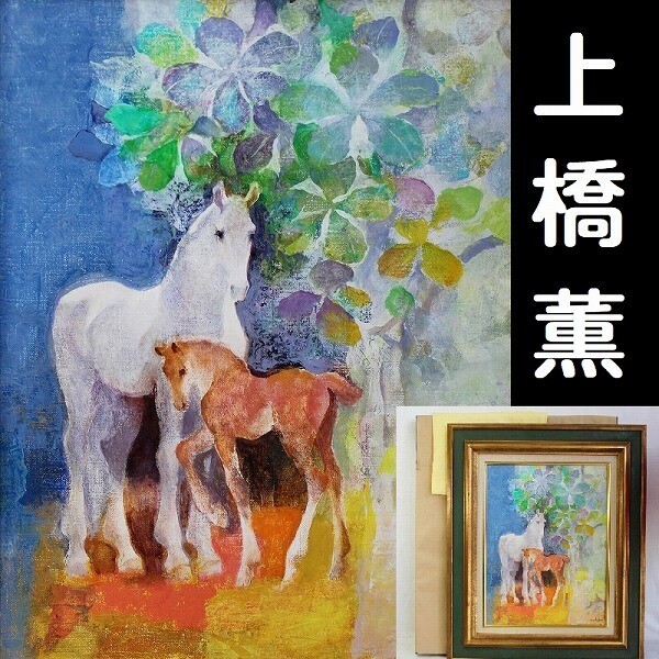 - 【真作】 上橋薫 「初秋樹下」 油彩6号 無所属人気画家 親仔馬名品 黄袋/タトウ箱 C50