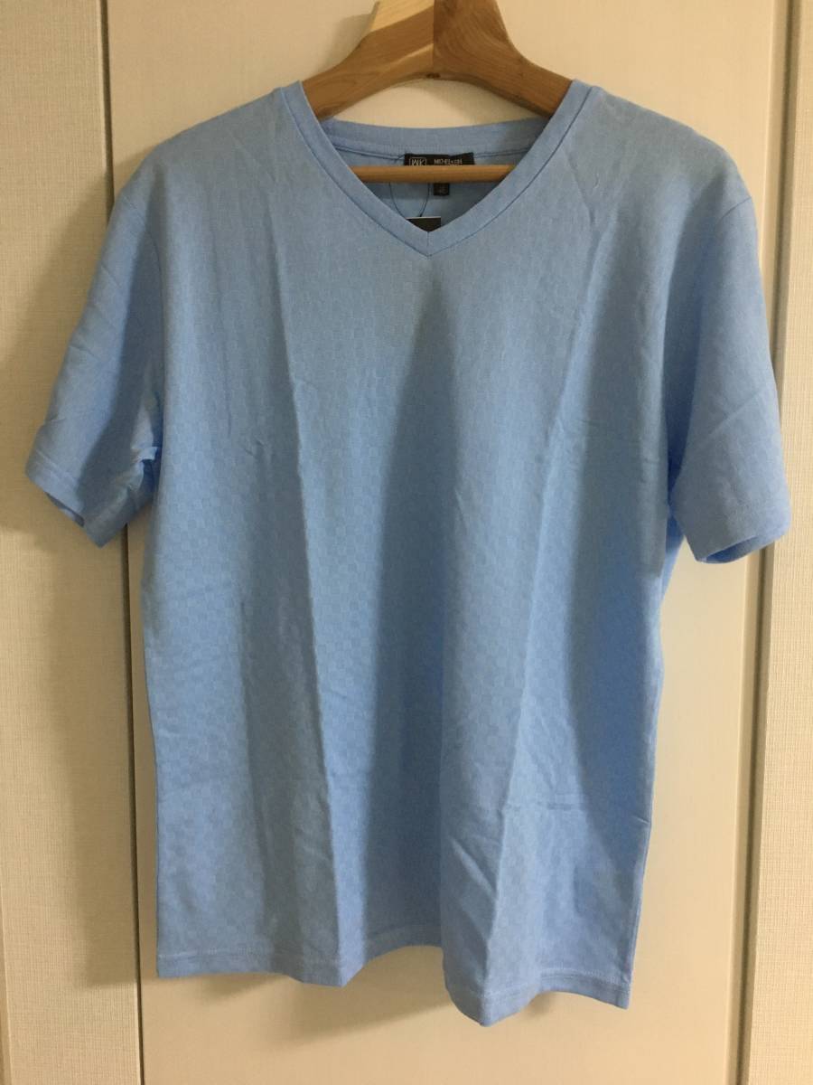 - MK オム ミッシェルクラン カットソー ブロックジャガード ライトブルー