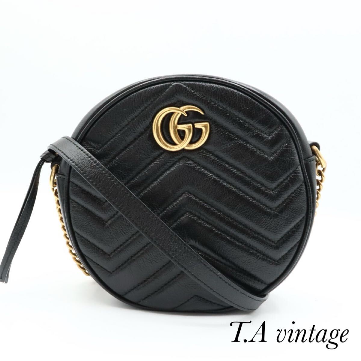 - GUCCI 美品 グッチ キルティング レザー GGマーモント ショルダーバッグ ブラック