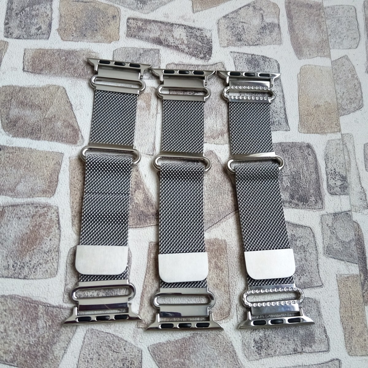 - 【100円スタート】アップルウォッチ 互換 バンド 替えベルト ステンレス 2色 3つセット 無段階調整 シルバー ラインストーン