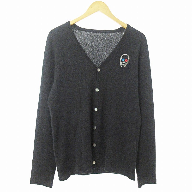 - ルシアンペラフィネ LUCIEN PELLAT-FINET スカル刺繍 スコットランド製 カシミヤ カーディガン ニット 長袖 L 黒 ブラック IBO68