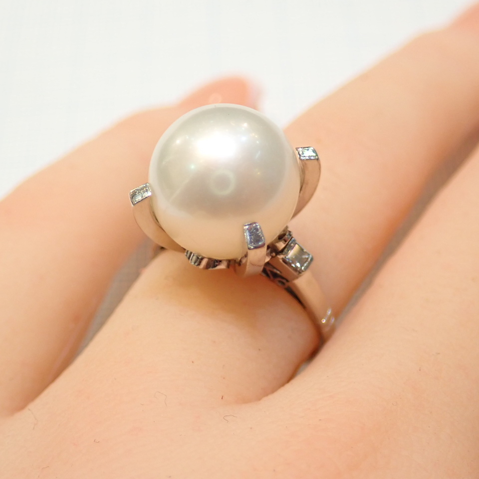 - ■PM 約12mm 南洋真珠(白蝶)パールリング D:0.11ct■アンティーク 昭和レトロ■プラチナ指輪■中古磨き仕上げ■