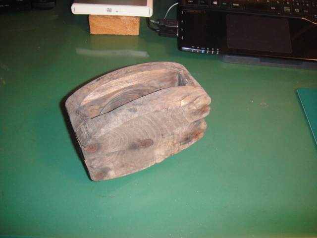 - 古民具・注目:★レトロ『木製大型・滑車』中古・並品 激安!