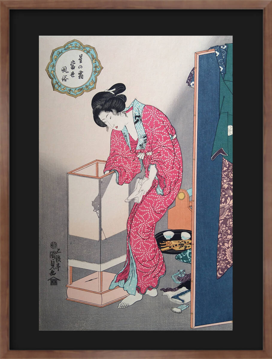 - 【浮世絵 極美 手摺木版】五渡亭国貞「星の霜当世風俗・行燈」縦約38.7cm 横約25.9cm 伊勢利板 錦絵 美人画 遊女 復刻の真作 歌麿 北斎