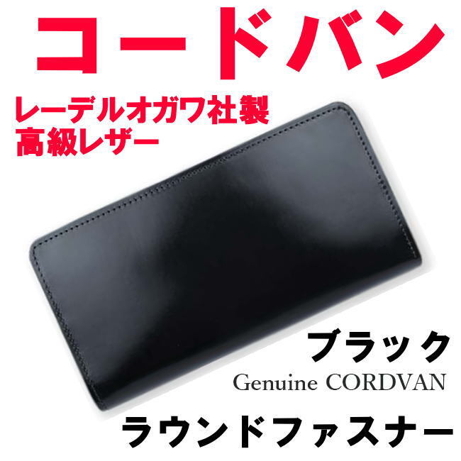 - ブラック コードバン 馬革 1005 ラウンド長財布 レーデルオガワ社 高級レザー