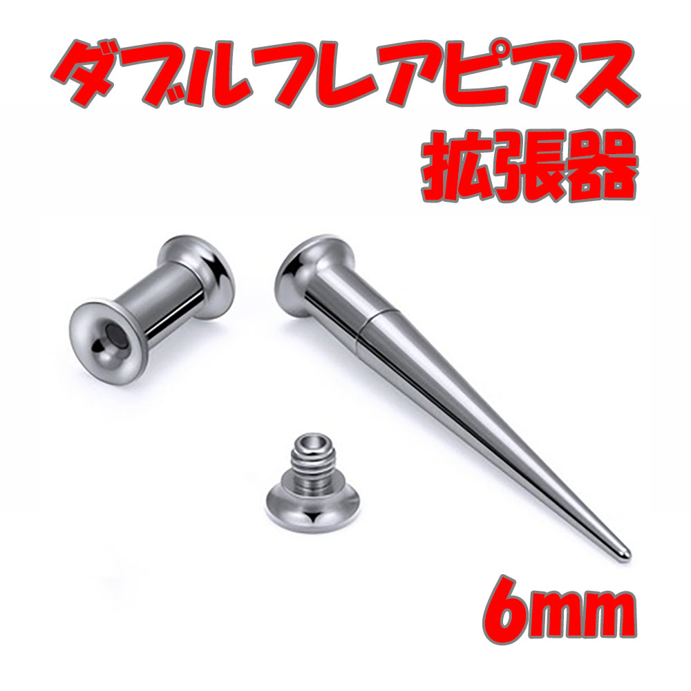 - ピアス 拡張器 ネジ式 ダブルフレア ボディピアス ステンレス シルバー 銀 6mm