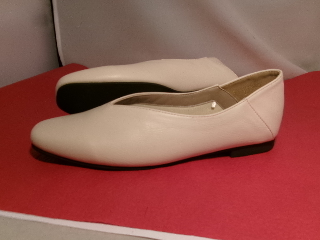 - M 激安! レディース カジュアル パンプスシューズ 212712 やわらかい合成皮革 カカトが踏める!大き目 美しいフォルム アイボリ色 幅広H1cm