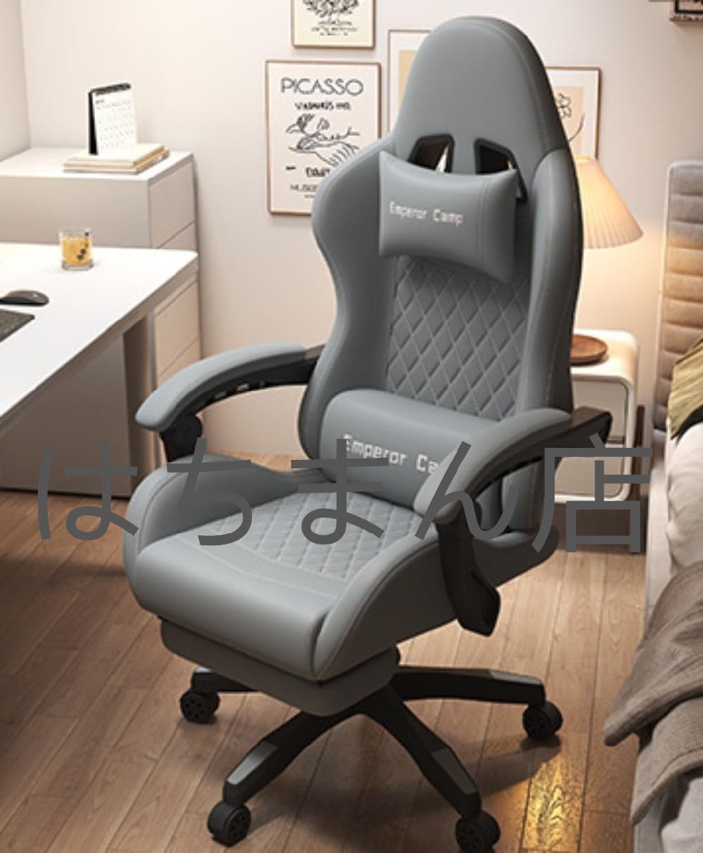 - ゲームチェア オフィスチェア パソコンチェア オフィス用チェア 電競チェア リクライニングチェア 調節可能な腰当て 155°傾斜 (灰です)