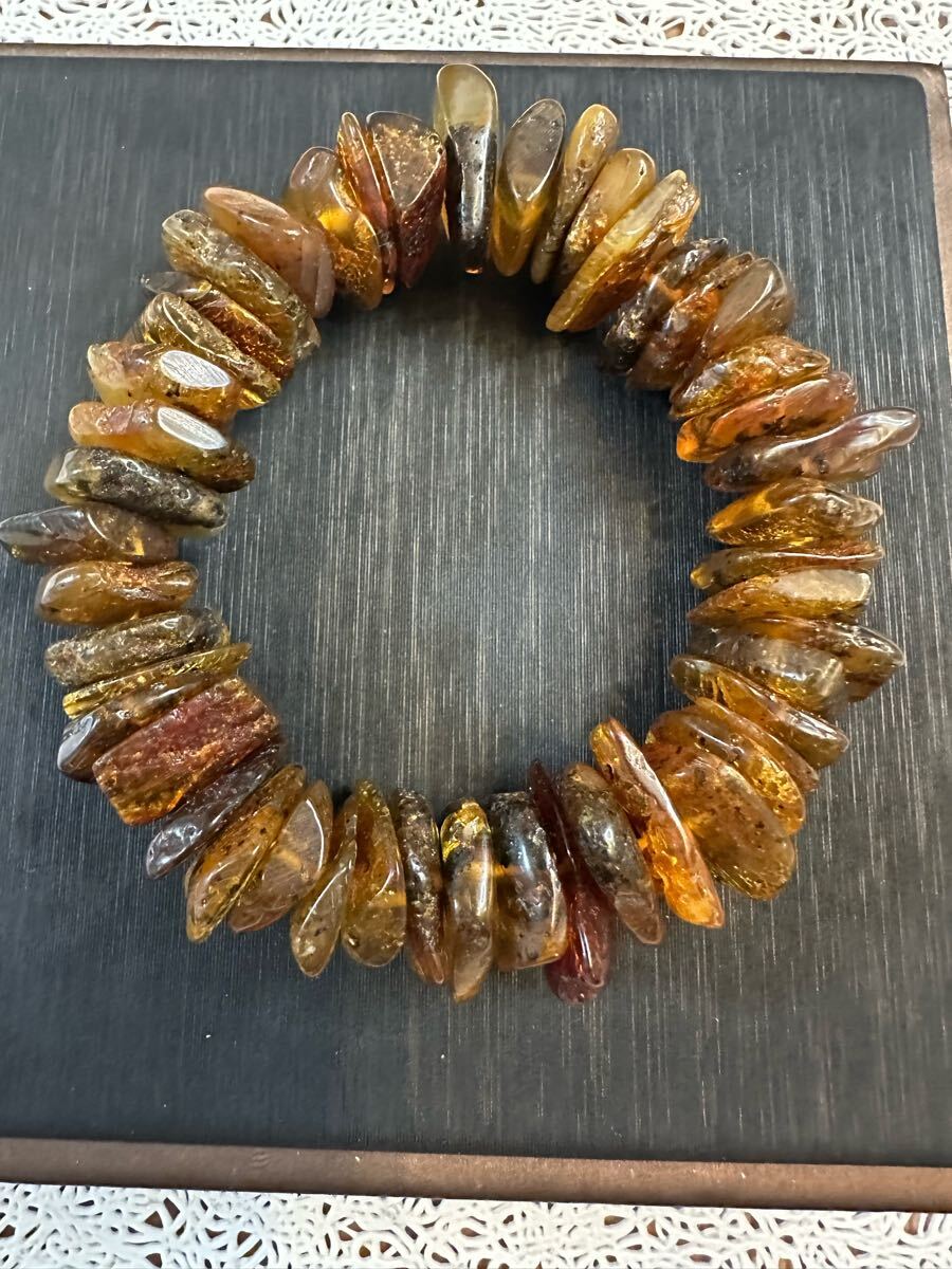 - T-722 天然 アンバー 本琥珀 薬珀 原石 ブレスレット 天然保証