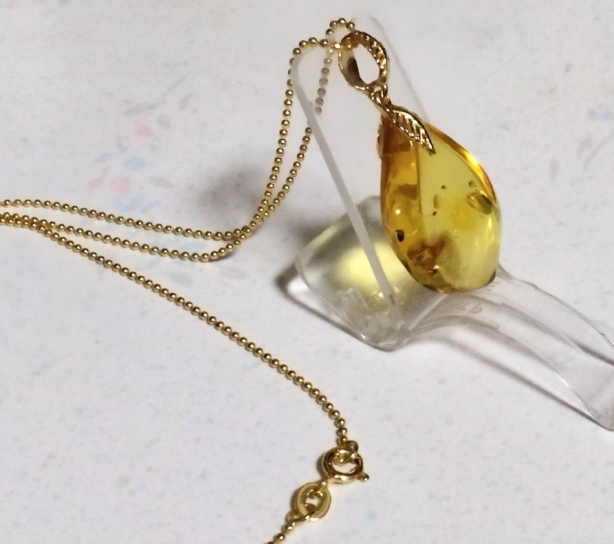 - 18Kゴールド仕様の5Aスパークリングアンバー【天然琥珀 】のゴールドネックレスNO.2