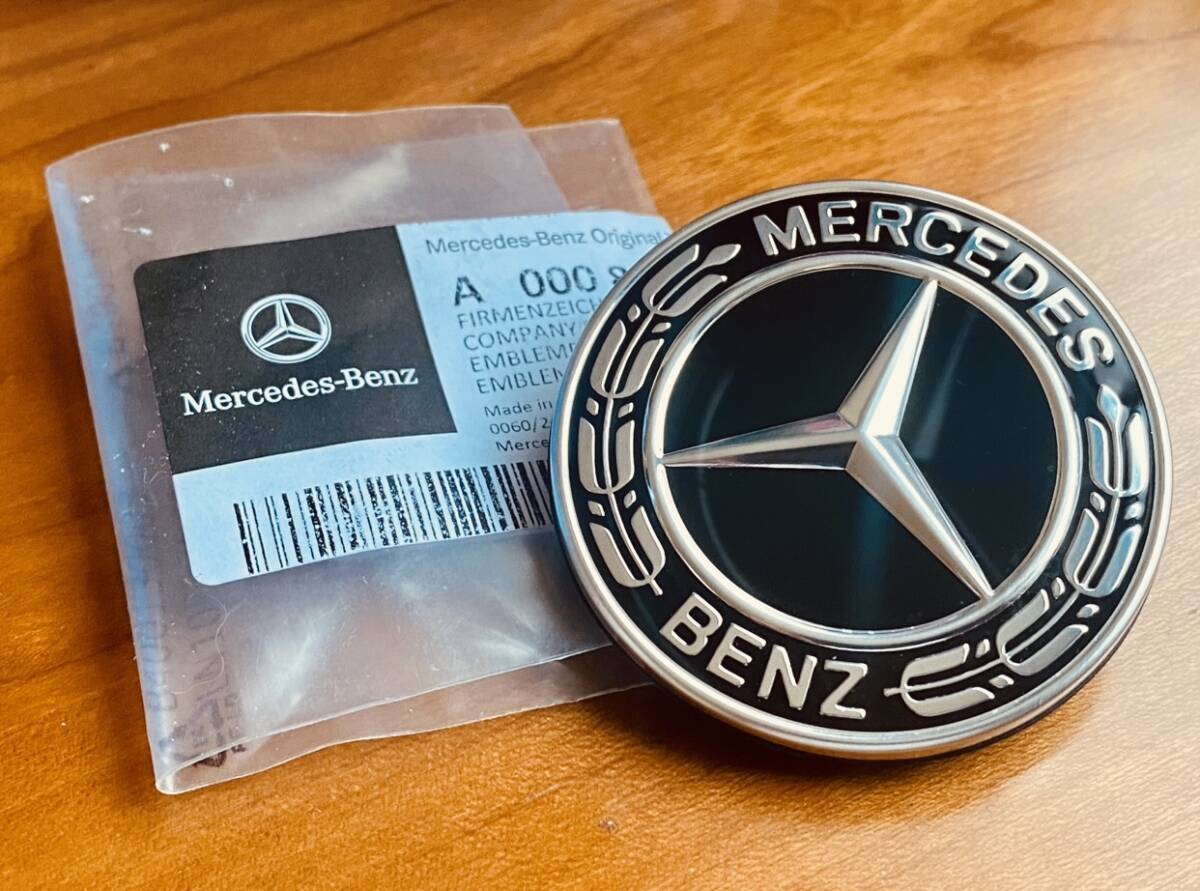 > Genuine Mercedes Benz Hood / Bonnet Emblem Black Laurel Wreath ◆ A 000 817 13 06 ◆ 純正 ベンツ ボンネットエンブレム