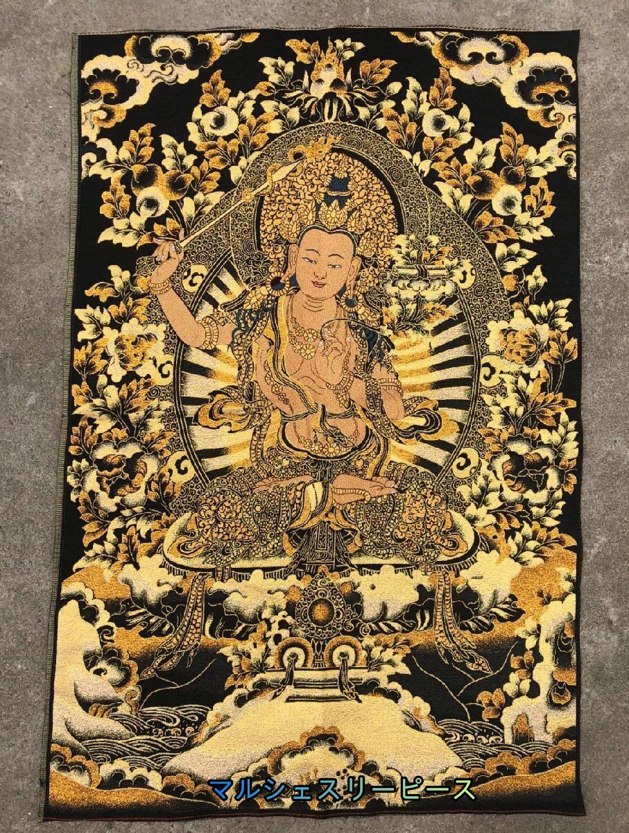 - 中国 チベット 密宗 密教 卍 ドンカ 金糸刺繍 錦絵 織物 仏像 仏画 文殊菩薩 仏教美術Y38112