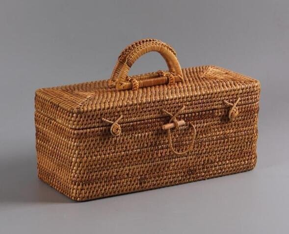 - 極美品★新作★竹工芸 提籃籠 收納盒 茶道具籠 茶具 竹細工 收納 未使用