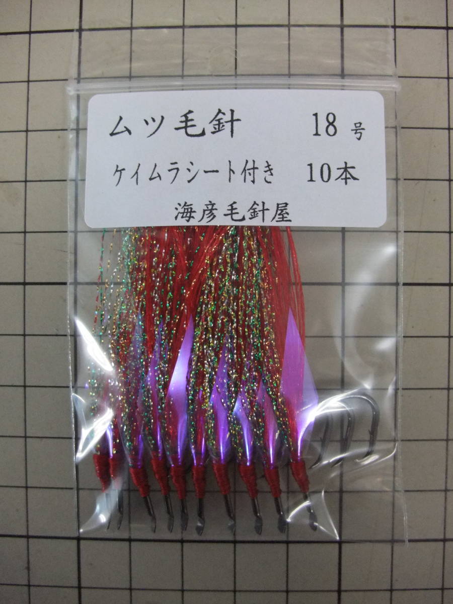 - 18AK ムツ18号毛針 赤フラッシャー ケイムラシート付き 10本セット