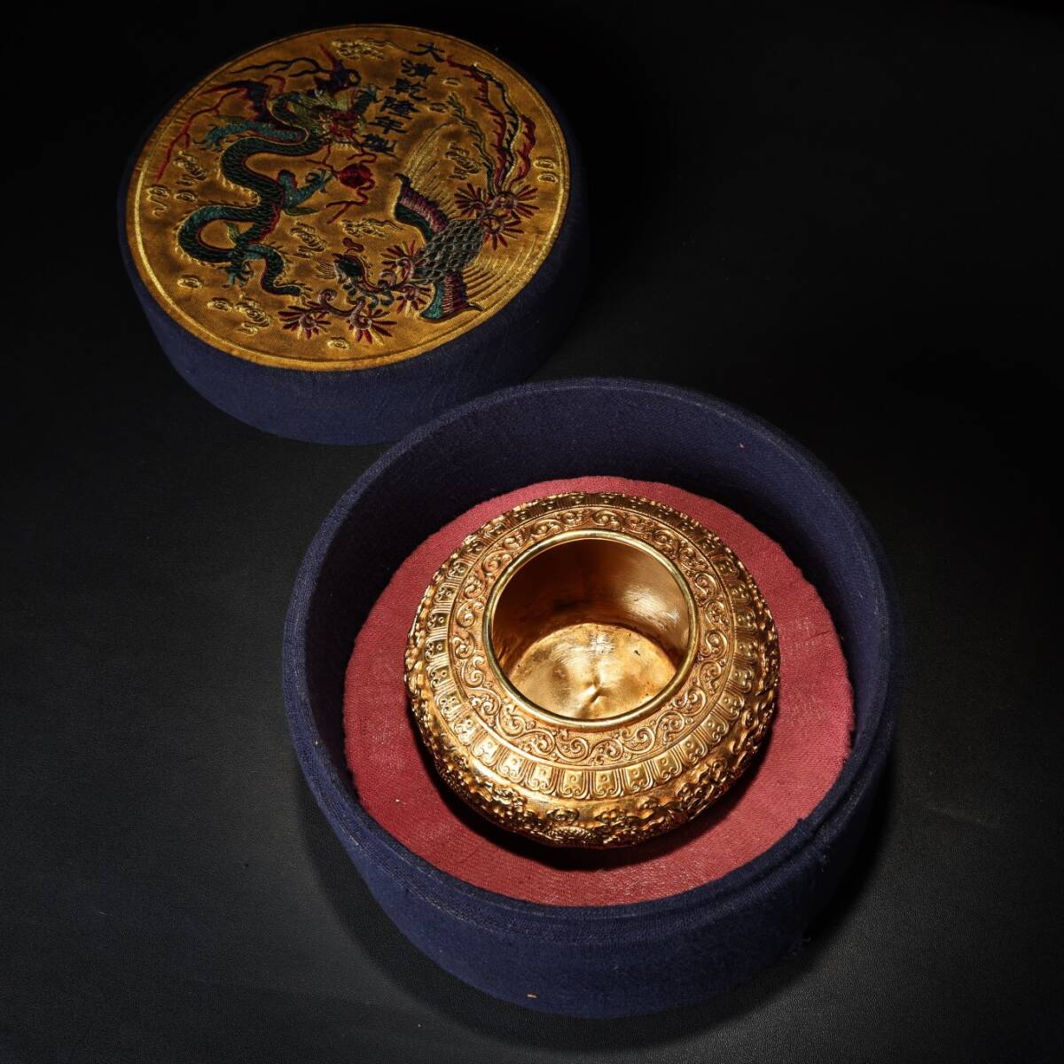 - ▽鴻▽ 銅製 塗金 盤龍罐 箱付 置物 古賞物 中国古玩 中国古美術