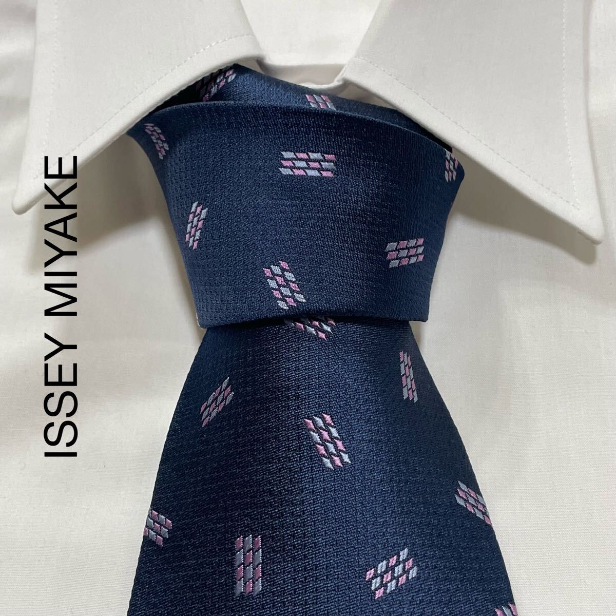 - ISSEY MIYAKE イッセイミヤケ パターン柄 ジャガード シルク ネクタイ 日本製 ネイビー TG1231