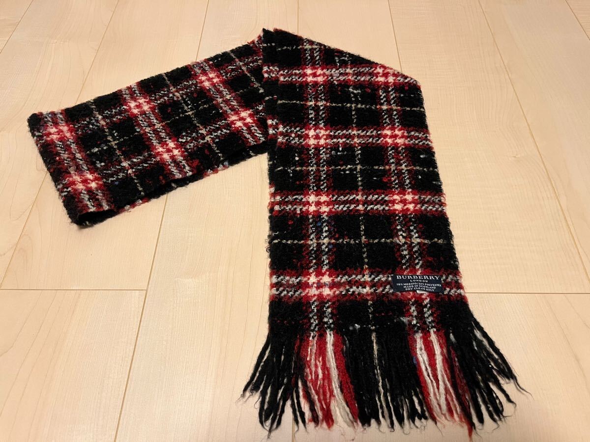 > BURBERRY バーバリー マフラー メリノウール78% ポリエステル22% 細長マフラー ブラック 送料無料
