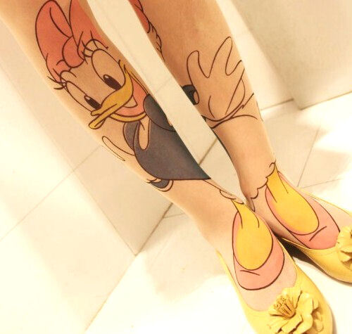 - NA タイツ ストッキング タトゥー プリント パンティーストッキング フェイク パンスト ベージュ デイジー