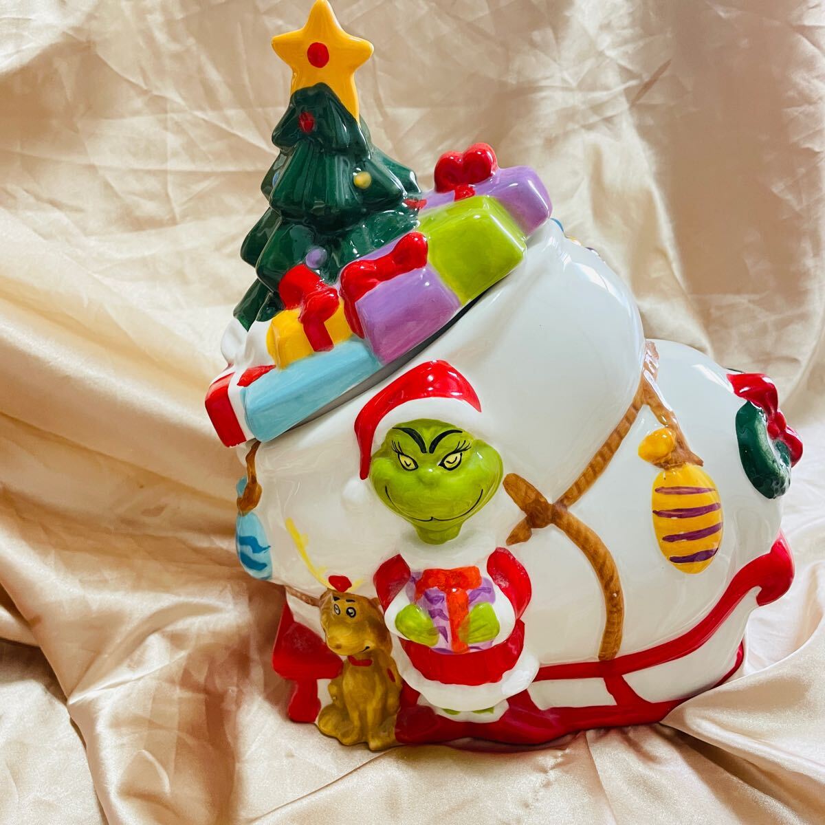 > Big size 約27*24cm当時物 希少 陶器 置物Dr. Seuss How the Grinch入手困難Candy Dish レトロ 26cmグリンチ クリスマス泥棒 陶器 置物 犬