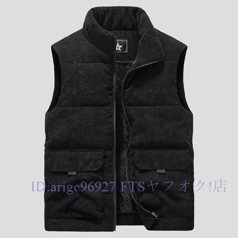 - ★新品裏フリース中綿ベストベストメンズ裏ボア裏起毛 チョッキノースリーブ アウトドアベスト黒 3XLお色選択可