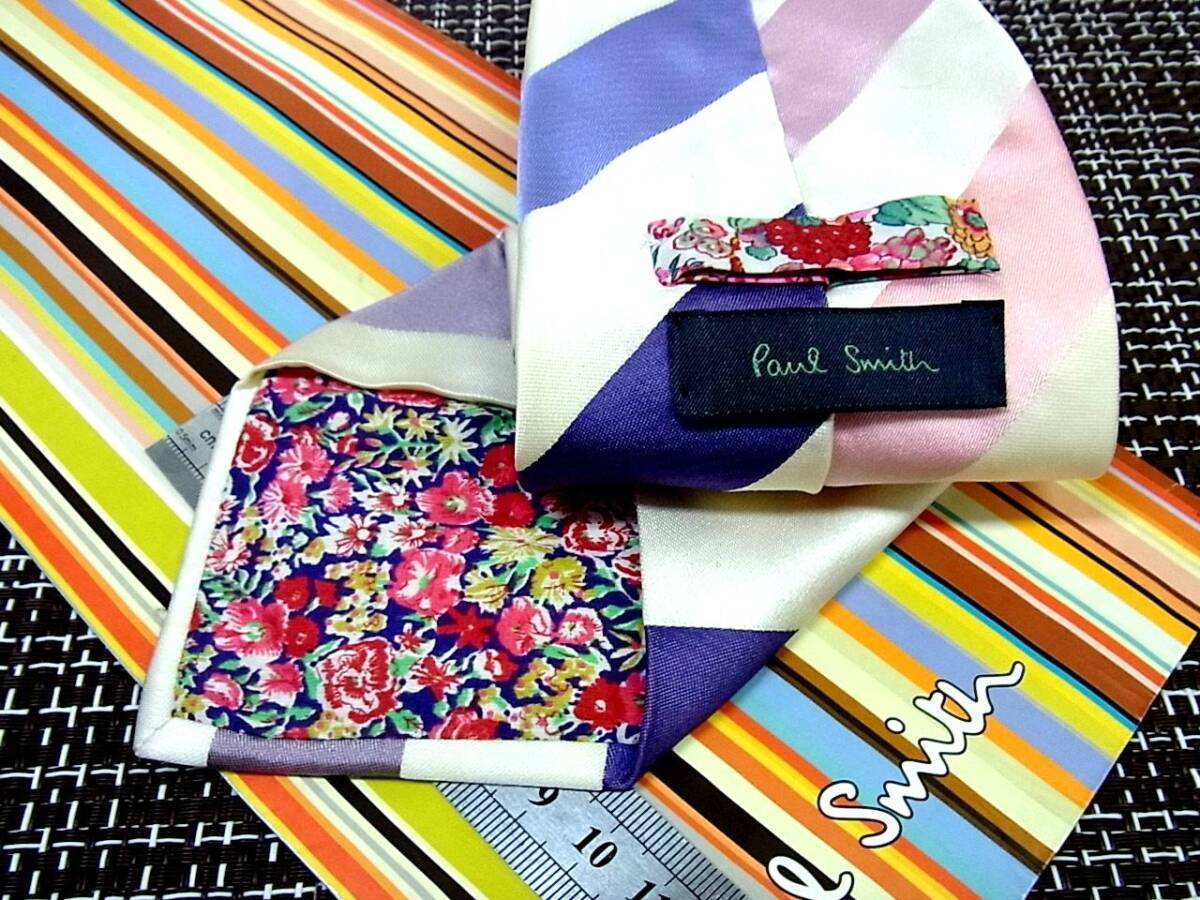- ☆状態並N☆7133■ポールスミス「人気の裏地・花モデル」【Paul Smith】【ストライプ 柄】ネクタイ