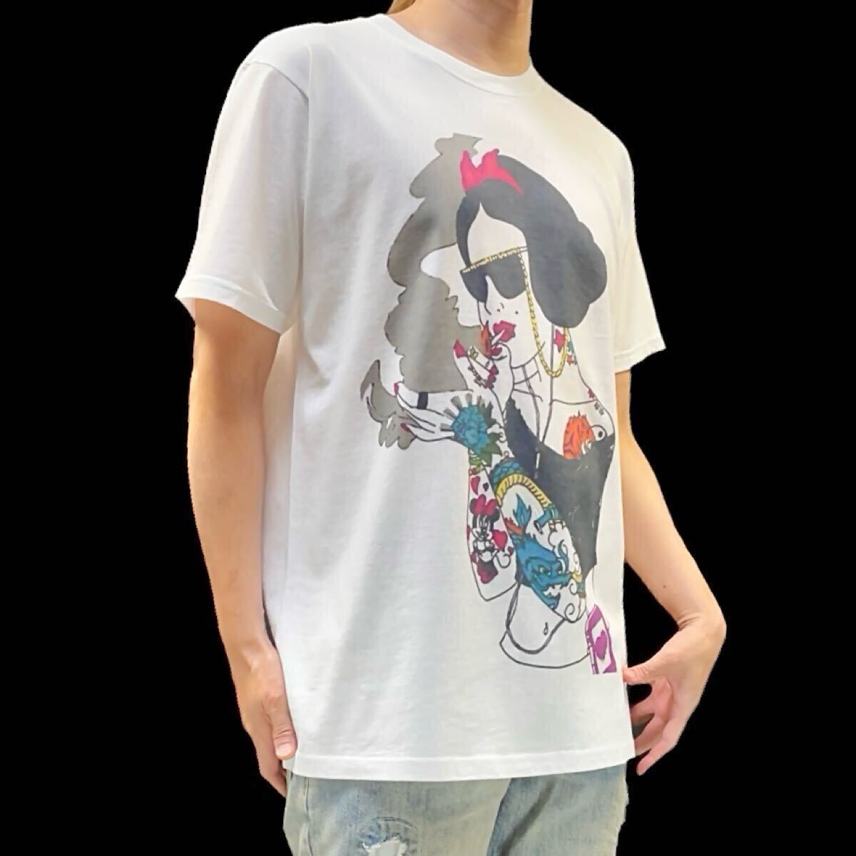 > 新品 ビッグプリント 白雪姫 サングラス タトゥー 煙草 スモーク 悪女 スノーホワイト プリンセス パロディ Tシャツ ユニセックス Lサイズ
