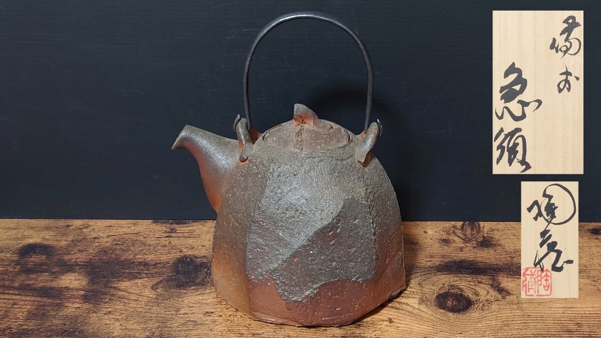 - 【小西陶蔵】備前 急須 共箱 銅打出提手 備前急須 備前市無形文化財
