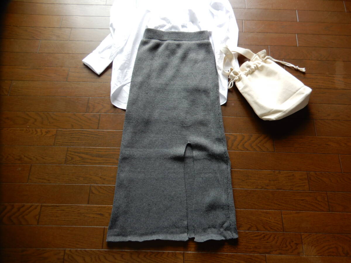 - ★新品未使用【GRL/グレイル】大人可愛いウエストゴムロングスリット入りグレーニットタイトスカート