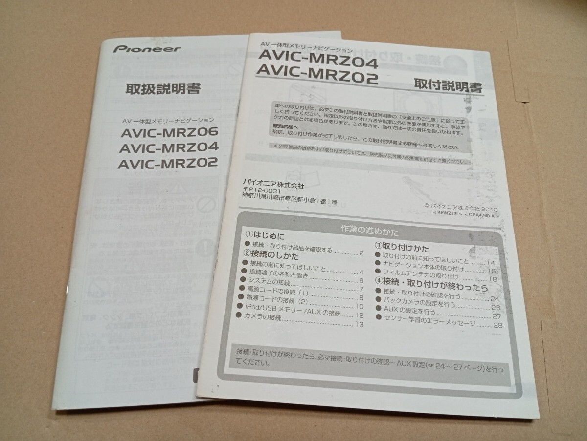 - カロッツェリア AVIC-MRZ06/AVIC-MRZ04/AVIC-MRZ02用 取扱説明書 取付説明書 取説 取扱説明書 取扱書 マニュアル carrozzeria